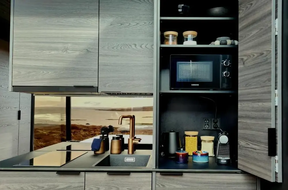 Eitt fallegasta gisting sem ég hef upplifað. Alveg ótrúlegur staður, notalegur nútíma gisting, risastór gluggar með fallegu útsýni, ekki til að sjá kornið að utan. Loftið er einnig gluggi, svo það er mögulegt að fylgjast með aurora eða stjörnum. Ótrúlegt þægilegt rúm. Logið fallegri strönd, þú getur fylgst með Tulene frá ströndinni. Teningin þín hlið við hlið og samt einkaaðila. Bílastæði beint við húsið. Ferðin var aðeins erfiðara að leita að, en annars allt frábært. Samskipti við eigandann Super. Chaction ferli sjálf -þjónustu kóðunarbox.